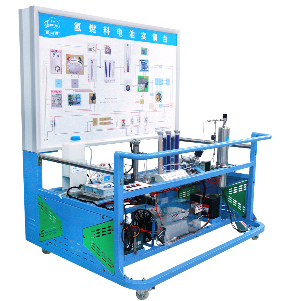 實(shí)訓(xùn)臺配備輕型、高效、節(jié)能、環(huán)保的高科技電解純水型氫氣發(fā)生器及其控制系統(tǒng),為氫燃料電池提供氫氣源;選用風(fēng)冷自增濕型質(zhì)子交換膜燃料電池(PEMFC)及其控制系統(tǒng),和儲氫裝置、儲能電池、功率模塊、散熱裝置等組合成氫燃料電池系統(tǒng)核心部件實(shí)訓(xùn)系統(tǒng)。